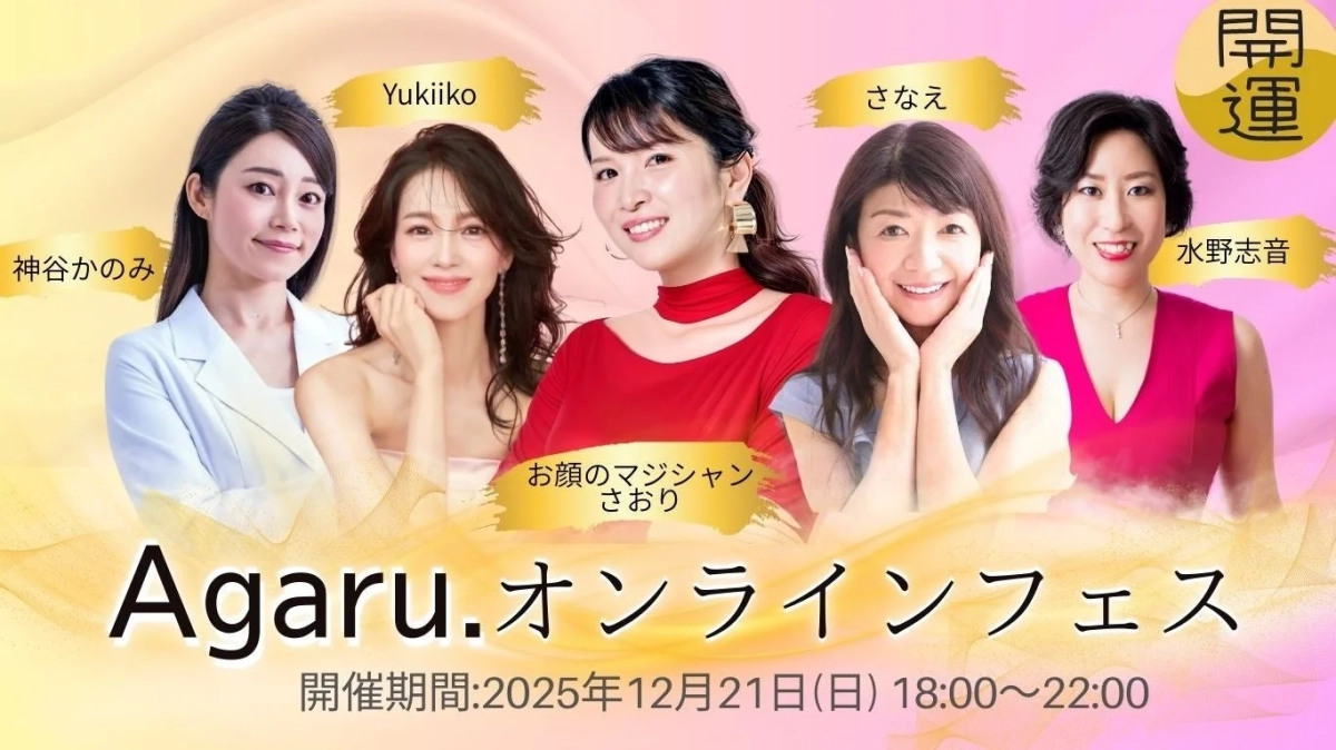 2025年の締めくくりに、そして新しい年を迎える準備として、この「Agaru.開運オンラインフェス」で、あなたの「美」と「運」を最高にアゲてみませんか?この見逃せないチャンスを、ぜひお見逃しなく!今すぐ事前申し込みをして、特別な一日を体験してくださいね!