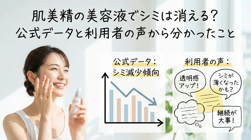 「今あるシミを消す」のではなく、「これ以上増やさない・肌を明るく整える」というのが、美白美容液の正しい役割です。この前提をもって、肌美精の実力を見ていきます。