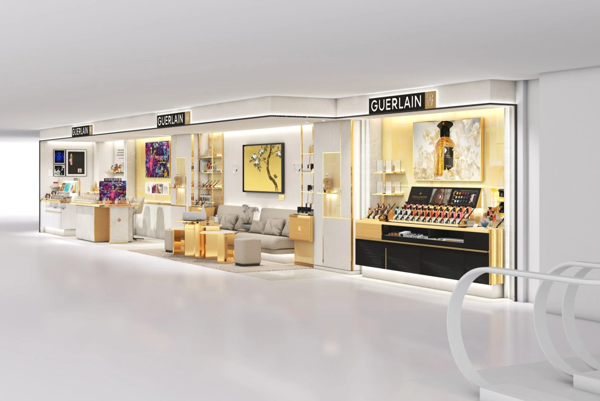 このブティックは、究極の美しさと感性を追求した最新のコンセプトに基づいてデザインされています。店内は、ラグジュアリーでありながらも優雅さに満ちた、ゲランならではの世界観を表現。中央には、昨年ゲランとコラボレーションした日本人アーティスト、品川亮氏がこのブティックのために手掛けた絵画とボトルの作品が展示されています。