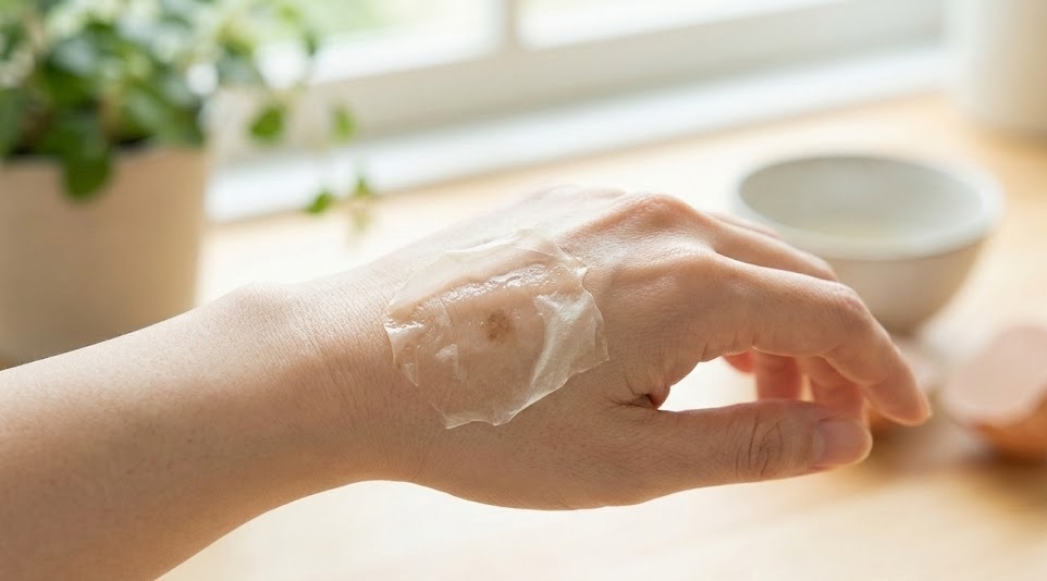 A. 卵の薄皮(卵殻膜)はコラーゲン・エラスチン・ヒアルロン酸などを特に多く含む部位です。白身にも保湿効果があると言われますが、乾燥・毛穴収縮効果を目的に白身を使うパックとは別のアプローチです。