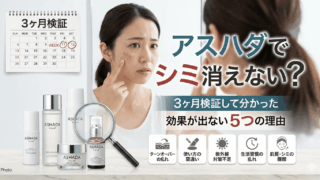 シミ消し特化型情報 アスハダでシミ消えない?3ヶ月検証して分かった効果が出ない5つの理由 アスハダを使ってもシミが消えない…そんなあなたへ。3ヶ月間の検証で分かった効果が出ない原因と、正しい使い方を実体験ベースで解説。諦める前に試してほしい5つのポイントをご紹介します。 2026.02.10 シミ消し特化型情報